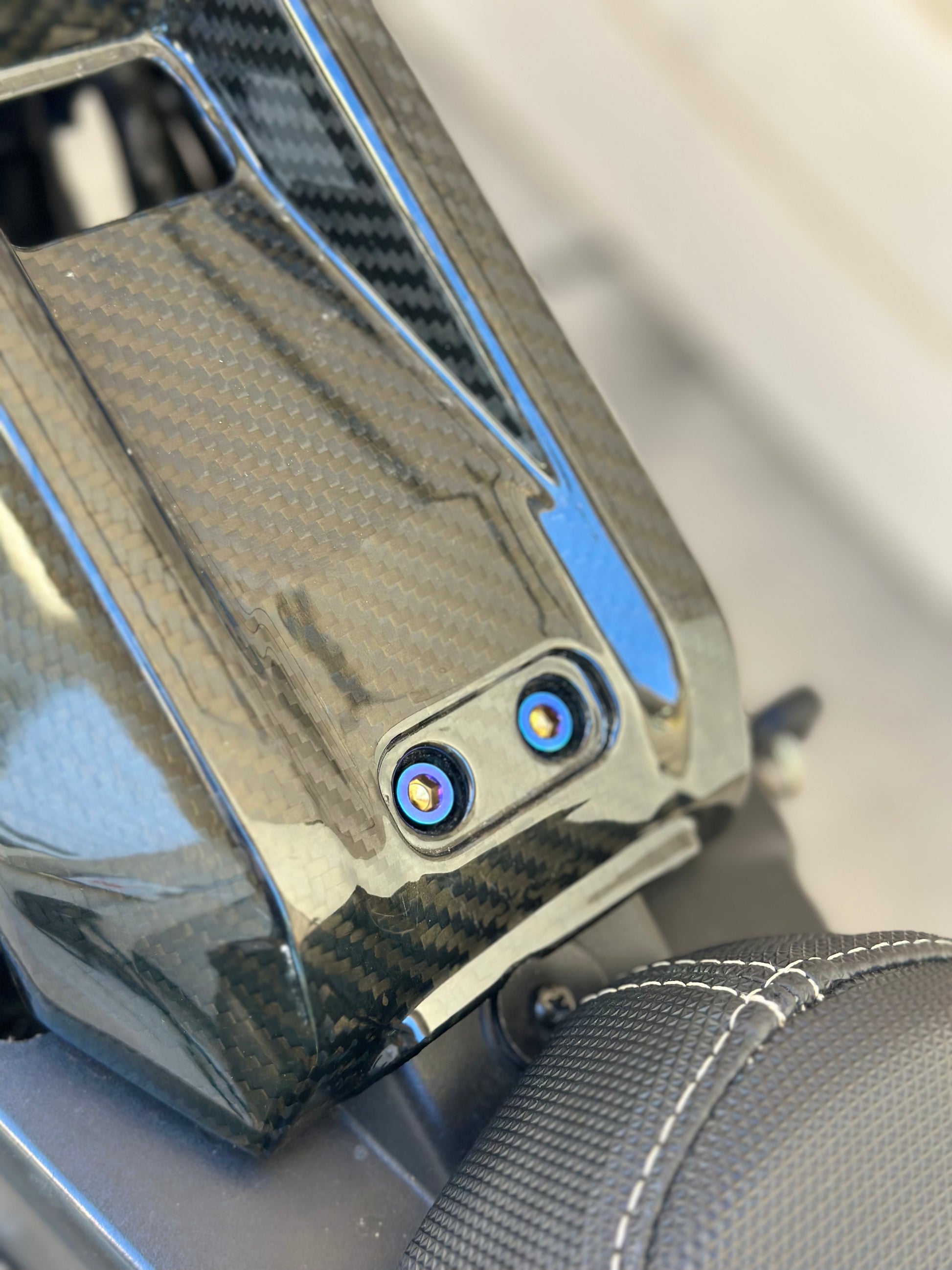 Set of 2 titanium burnt blue bolts for your Surron battery lid. Does not include nut, just re-use the nut from your old bolts. Will be shipped in 1-2 days.